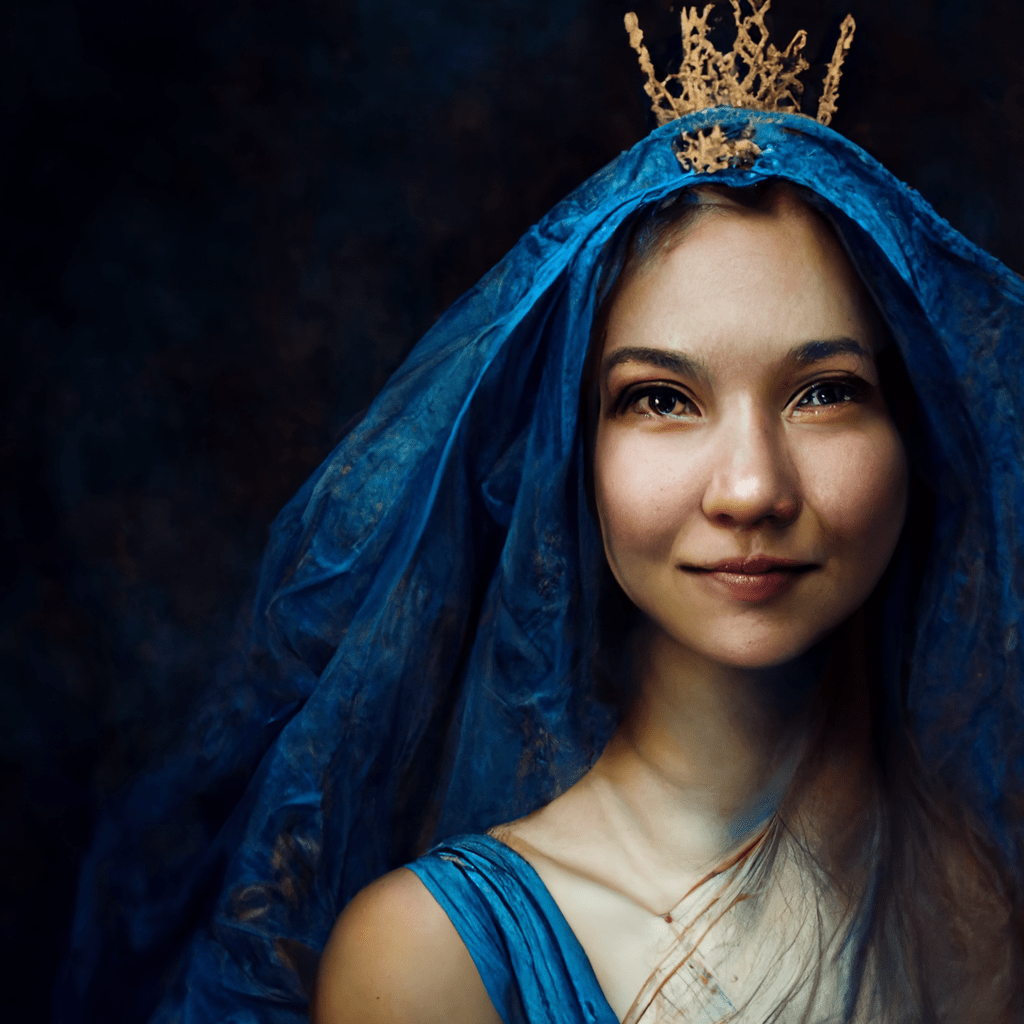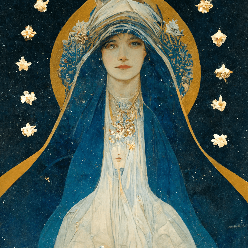 After many iterations and recreations, I finally landed on this image to depict how I think of the Blessed Virgin Mary.