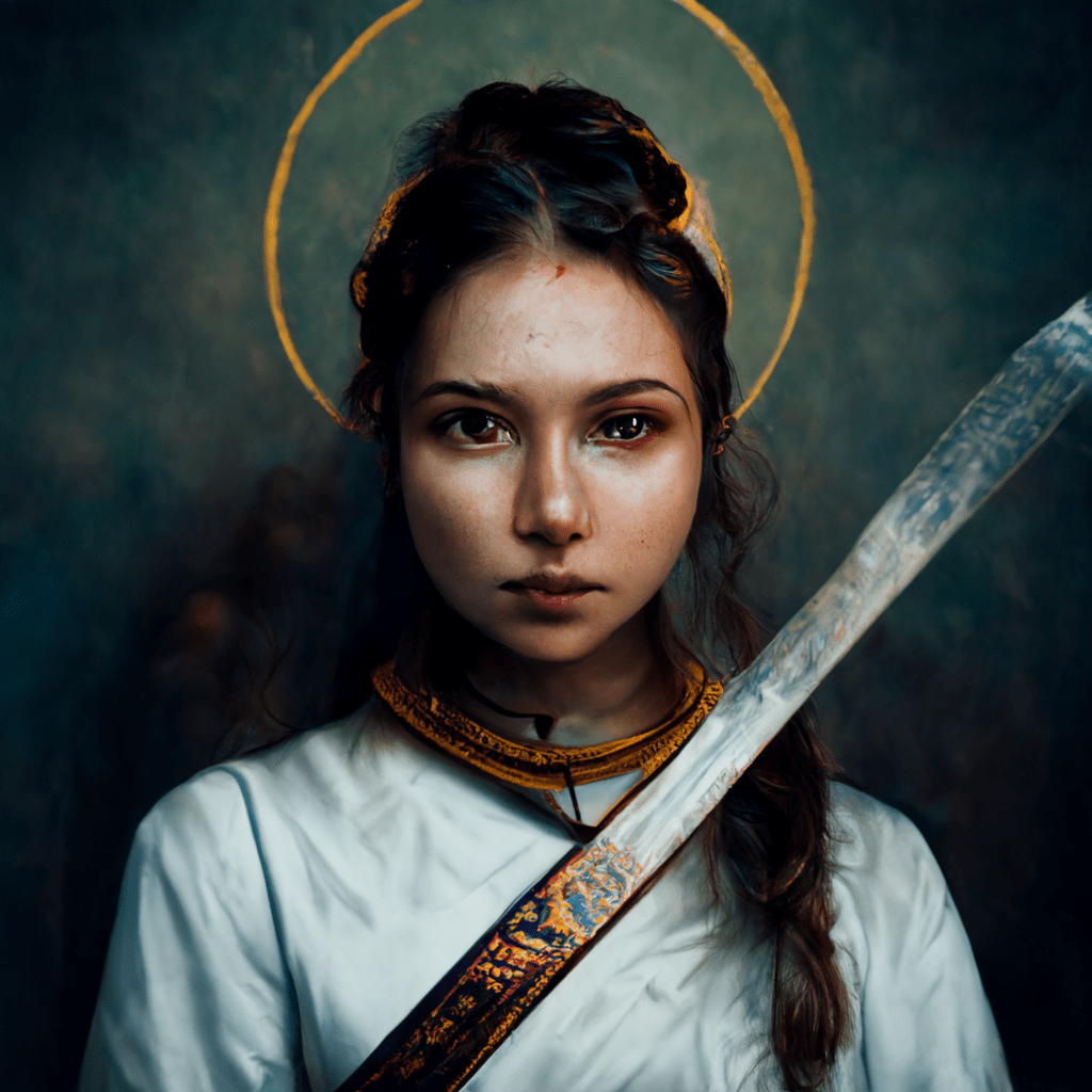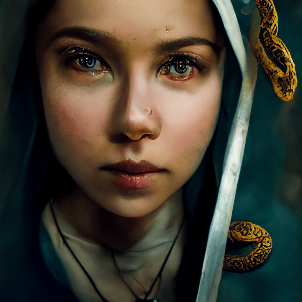 Below is an image depicting St. Dymphna, the patron saint of those suffering with mental illness. Her symbols are her holding a sword or holding the devil by a leash. (pretty badass if you ask me)
